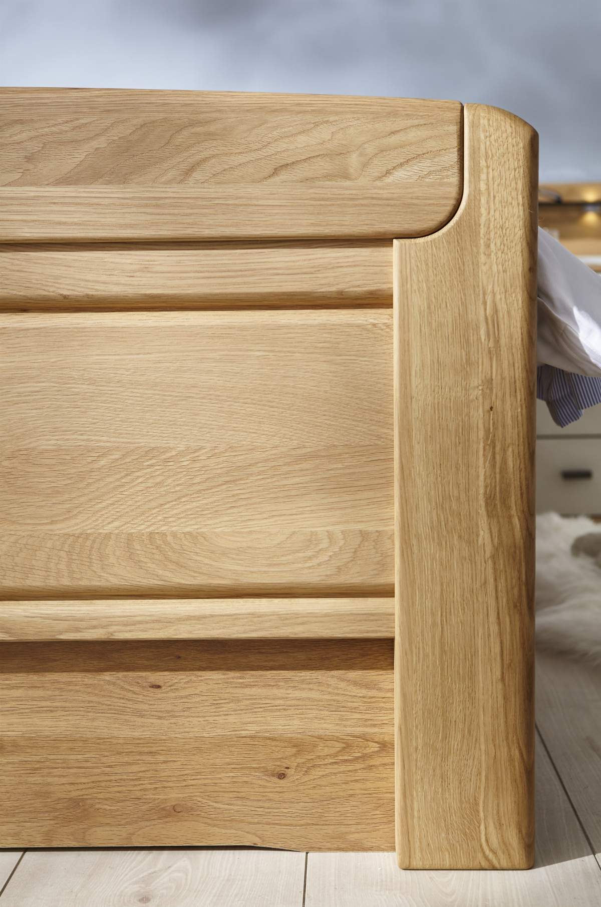 - Das zeitlose Schlafzimmerprogramm Lenoso sorgt für eine angenehme Atmosphäre in den eigenen vier Wänden. Die Fronten aus massiver Eiche geben Ihrem Schlafzimmer eine stilvolle Optik, die durch Highlights wie dem Parsol-Spiegel und champagnerfarbenem Absetzungsglas abgerundet wird. Wählen Sie zwischen Drehtürenschränken, Funktionsschränken oder Schwebetürenschränken, ergänzt durch optionales Zubehör, um Ihre Klamotten platzsparend zu verstauen. Betten in diversen Maßen oder zusätzliche Beimöbel wie Kommoden komplettieren das Schlafzimmer Lenoso!