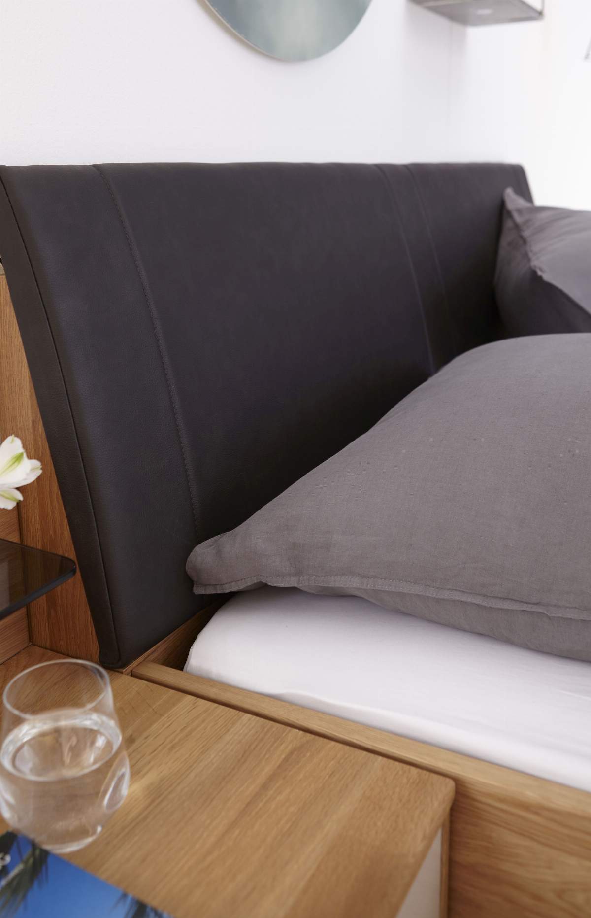 Produktinformationen "Bett Lenoso - Liegefläche ca. 180x200 cm, Eiche massiv, Kunstleder Anthrazit"
