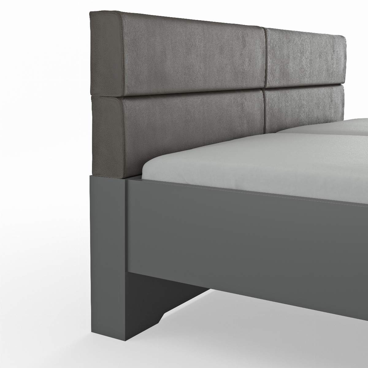 Details: Abmessungen Polsterkopfteil Polster gerade, Bezug Elephant, Kunstleder, anthrazitBettrahmen Lack Manhattan PG 2mit Füssen Nickel mattMatratzenrahmen 4-fach höhenverstellbar