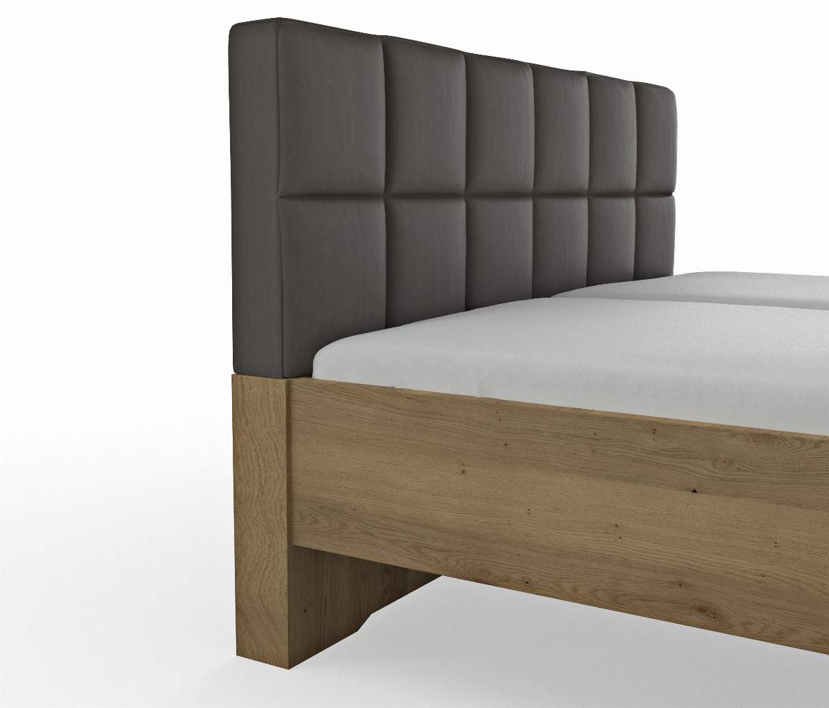Details: Abmessungen Ausführung: Balkeneiche echtholzfurniert, PG 2Polsterkopfteil gesteppt, Bezug Elephant, Kunstleder, anthrazitmit Stollenliegenfußteil