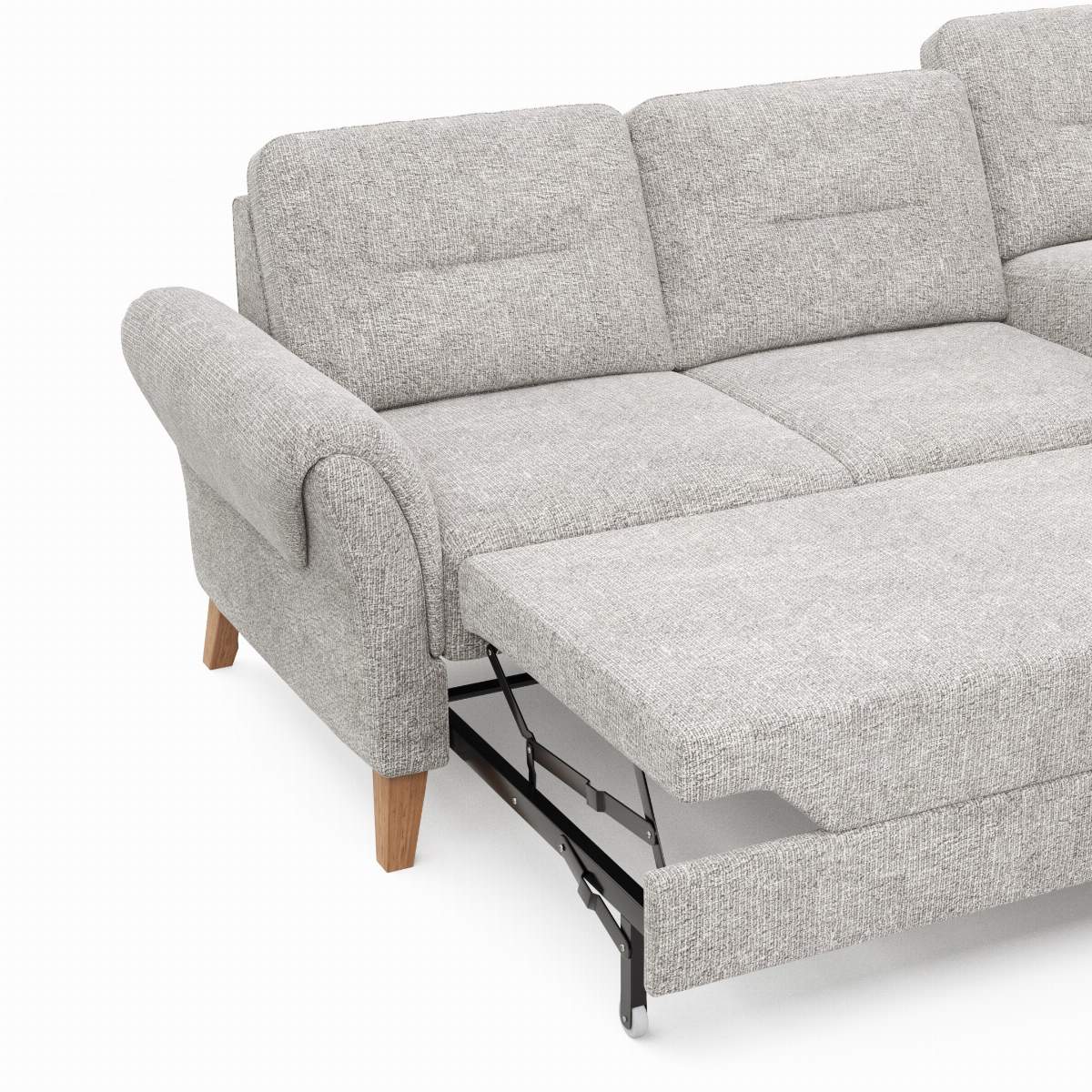 Ecksofa Almyra - 2,5-Sitzer mit Ottomane rechts, inkl. Schlaffunktion und Bettkasten, Stoff, Silbergrau