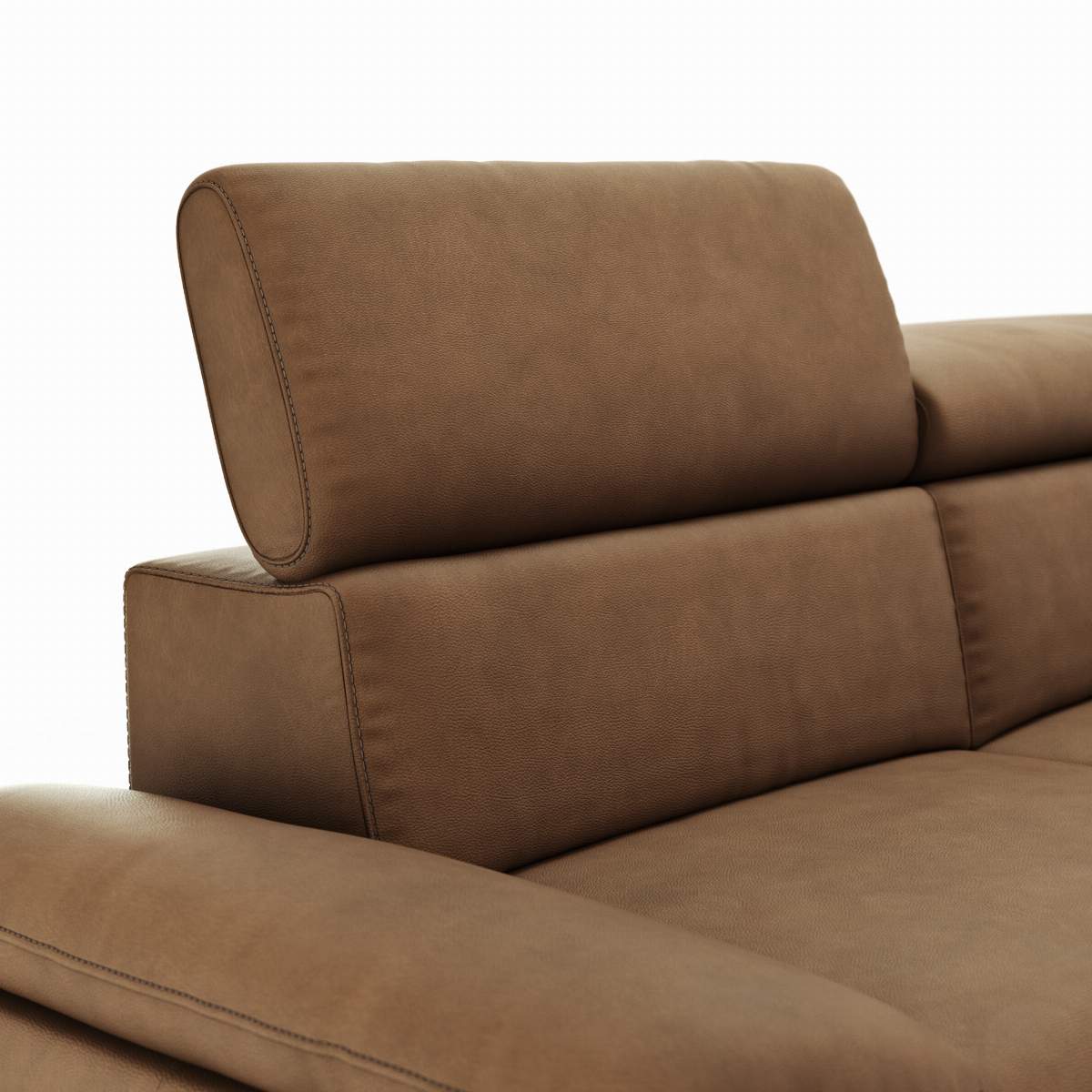 Ecksofa Felipa - 2,5-Sitzer mit Longchair rechts inkl. Armlehne verstellbar und Rückenlehne/Sitztiefe verstellbar (motorisch), Leder, Cognac