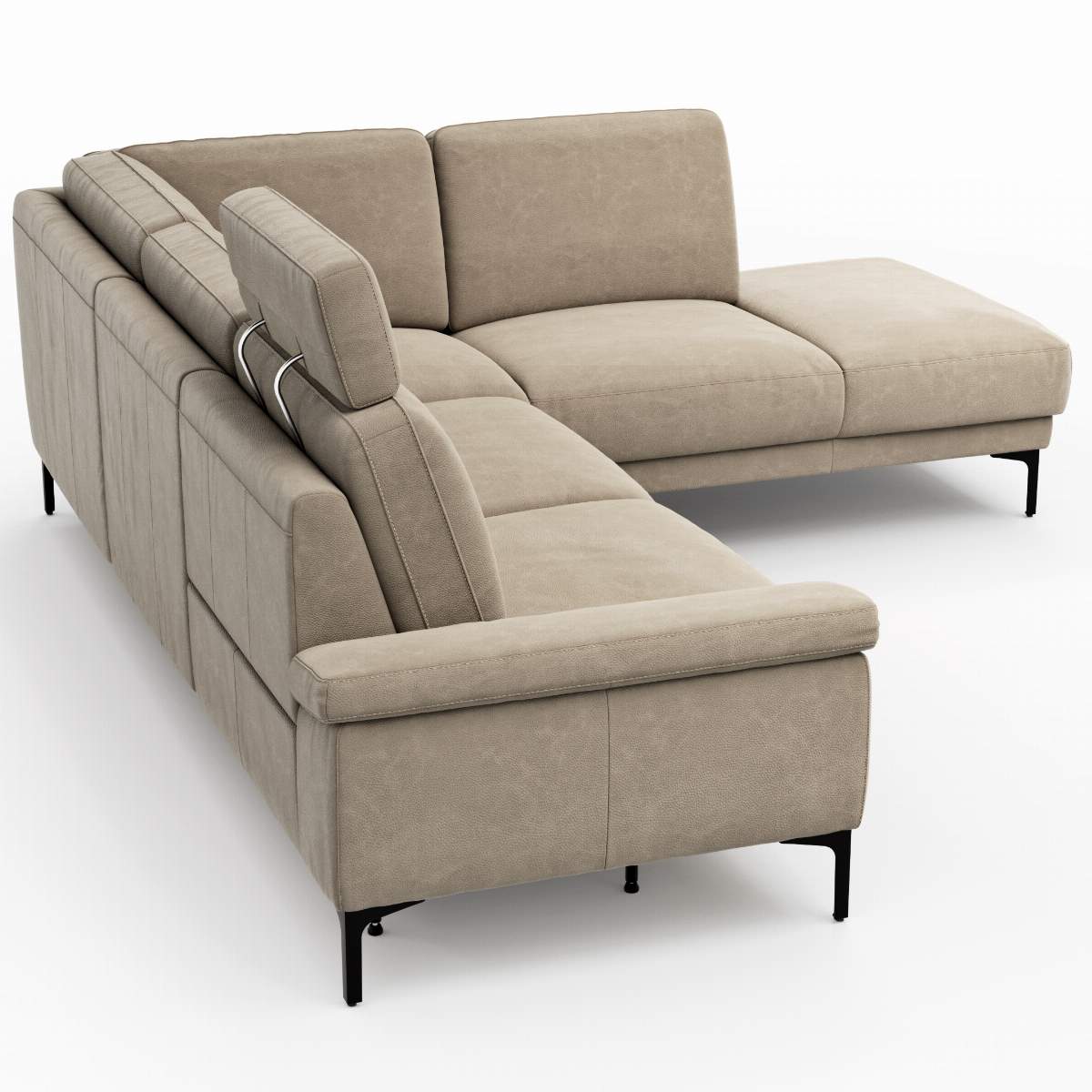 Produktinformationen "Ecksofa Matero - 2-Sitzer mit Ecke rechts inkl. Relaxfunktion motorisch und Sitzvorzug, Leder, Taupe"
