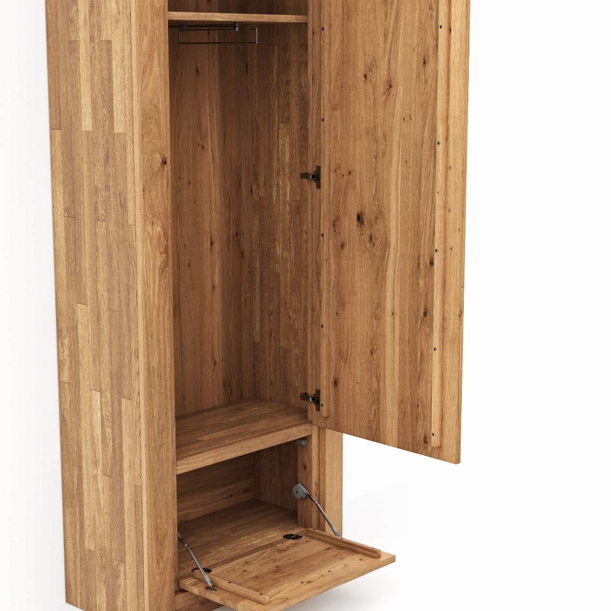 Produktinformationen "Garderobenschrank Farmingdale - Rechtsanschlagend, Eiche massiv, natur geölt"