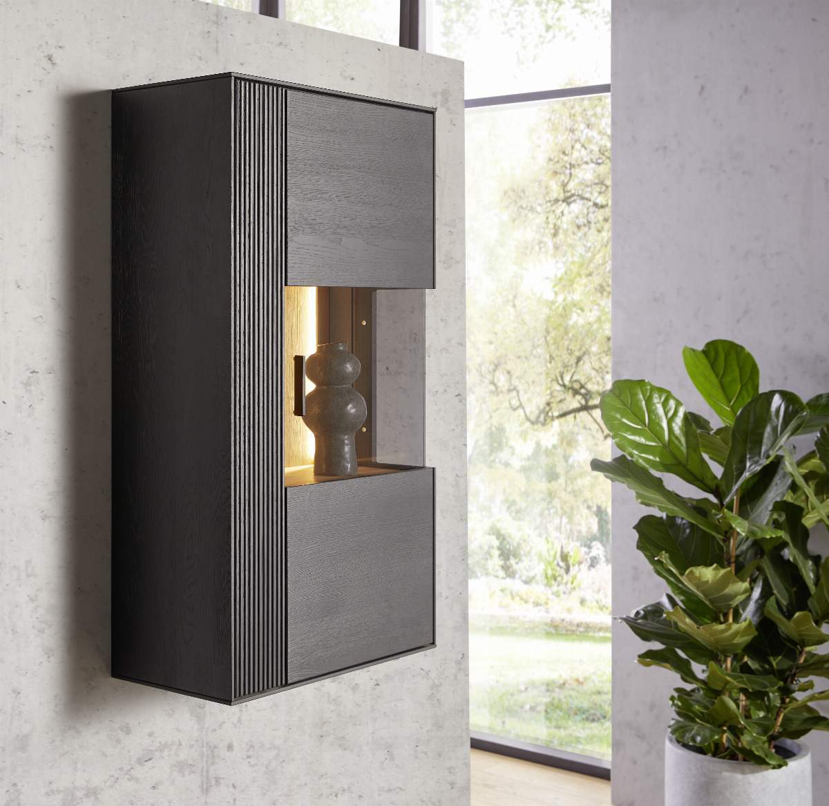 Hängevitrine Estana - inkl. Beleuchtung, Eiche massiv, anthrazit