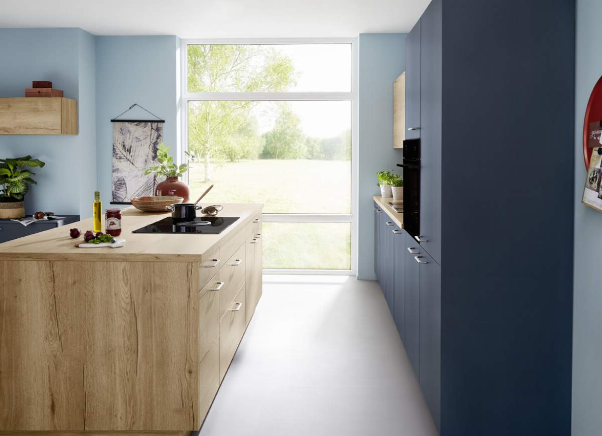 - Entdecke die einzigartige Inselküche 34.190. Das Highlight der Küche ist ihre Kombination aus fjordblauen und holzfarbenen Fronten, die ein Hauch von skandinavischer Atmosphäre in dein Zuhause bringen. Zudem punktet die Inselküche mit ihrer modernen und praktischen Bauweise. Durch den zusätzlichen Stauraum wird dein Kocherlebnis effizient und angenehm. Genieße die Vorteile, die diese attraktive Inselküche bereit hält.Stellmaße: ca. 363 cm, Insel 250 cmAlles mit drin...Hochwertige Markentechnik von AEG und Bora: Backofen EB42B, Kochfeld mit Muldenlüfter Umluft GP4U, Kühlschrank EKS123E
