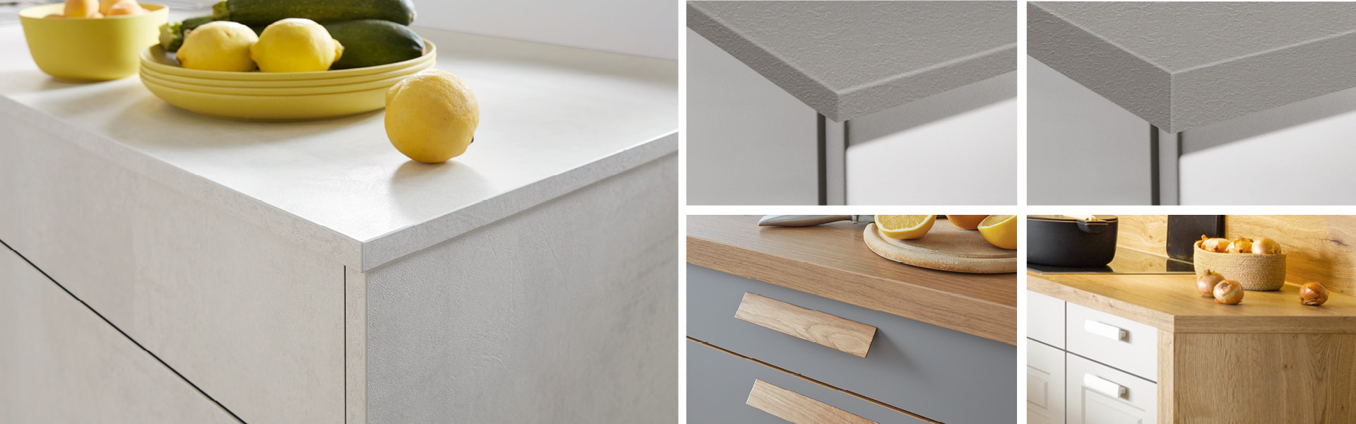 Dank der vielfältigen Auswahl an Farben und Dekoren ist für jeden etwas dabei: Wählen Sie aus einer Vielzahl unterschiedlicher Farben und Dekoren und verleihen Sie Ihrer Küche den letzten Schliff! Die reichhaltige und umfangreiche Auswahl an Arbeitsplatten ermöglicht ein perfektes Küchendesign. Lassen Sie sich inspirieren!