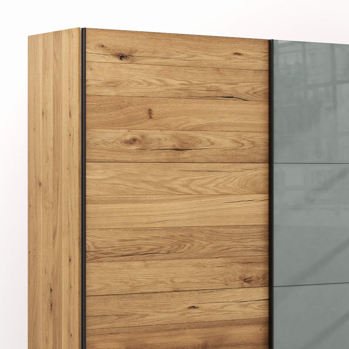 Schwebetürenschrank Colorado - B. ca. 257 cm, Eiche, Glas Graugrün