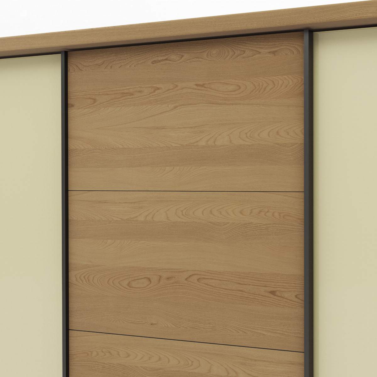 Details: Abmessungen Türen Außen: Glas champagnerfarbenTüre Mitte: Eiche massivGriffleisten: Metall, schieferfarbeninkl. Passepartoutrahmen