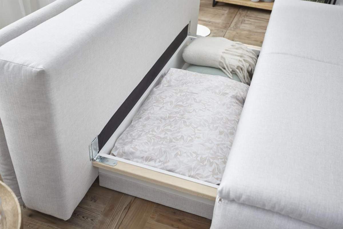 - Im Nu vom Sofa zum Bett Das schöne Schlafsofa Lakeville lässt sich im Nu vom Sofa zum Bett umfunktionieren! mit integriertem Bettkasten Boxspringaufbau im Sitz großzügige Liegefläche echt bezogener Rücken Der Traum vom schicken Schlafsofa wird nun wahr: Die harmonische Optik erlangt das Schlafsofa durch die Kombination des feinen Bezugsstoffes und der Holzfüße. Die nach außen gestellten Füße verleihen eine gewisse Leichtigkeit. Durch den echt bezogenen Rücken kann das Sofa ganz nach Ihren Wünschen frei im Raum gestellt werden. Der Boxspringaufbau im Sitz verleiht bequemen Sitzkomfort, der integrierte Polyschaumtopper rundet das Profil ab. Im Nu kann das Sofa zum Bett umfunktioniert werden: Wenn Sie die Sitzfläche vorziehen, kommt gleich ein Bettkasten zum Vorschein. In dem können Sie vorab schon Bettzeug verstauen und bei Bedarf herausholen. Er bietet auch genügend Platz um die Rücken- und Armlehnkissen darin unter zu bringen. Dann klappen Sie noch das Rückenteil um und fertig ist die Schlafgelegenheit. Spontane Übernachtungsgäste sind herzlich willkommen - Lakeville macht es möglich.